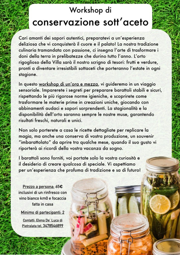 Alla fine di ogni corso, gli ospiti porteranno a casa le ricette dettagliate dei piatti preparati, comprese di preziose informazioni e tecniche culinarie. Il mio obiettivo è fornire gli strumenti per sperimentare con creatività una volta tornati a casa, trasformando la cucina quotidiana in un’avventura gastronomica.